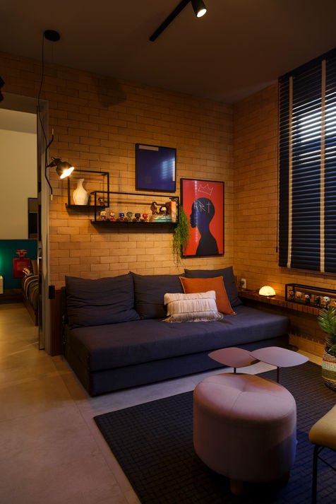O desejo era por um apartamento descolado, com alma geek, para morar bem e receber melhor ainda! Inicialmente, nada de trabalho em casa, mas a pandemia veio para mudar a rotina de todos, nos levando a revisitar esse projeto e criar uma área de trabalho que parecesse sempre ter estado ali!